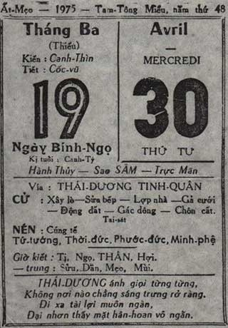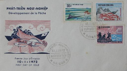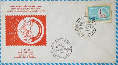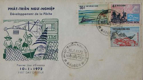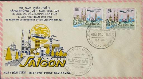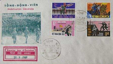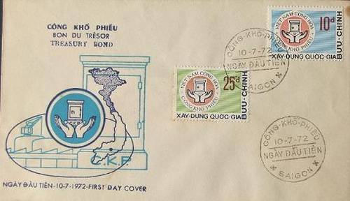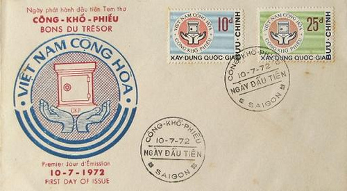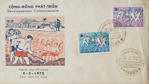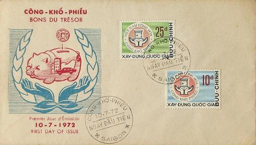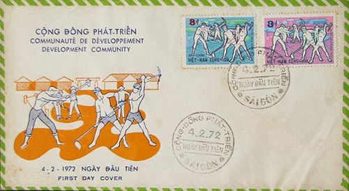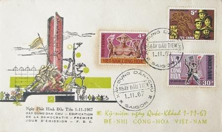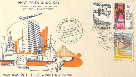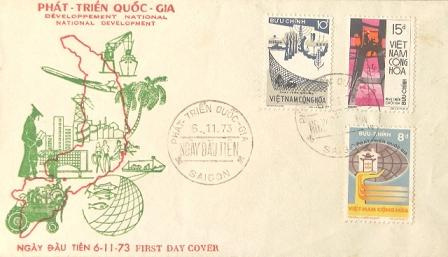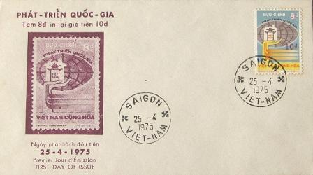 Ngày 25/04/1975 phát hành mẫu tem "Phát triển quốc gia" in lại giá mặt