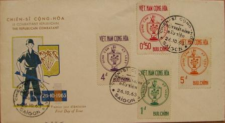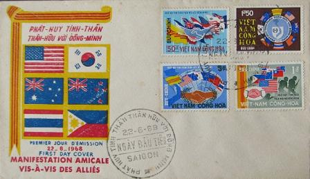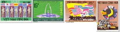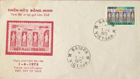 Ngày 01/04/1975 phát hành mẫu tem "Chiến hữu đồng minh" in lại giá mặt