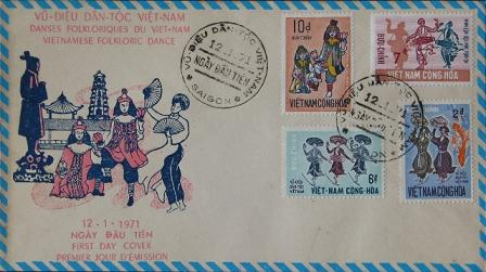Ngày 01/08/1974 phát hành mẫu tem "Vũ điệu dân tộc" in lại giá tiền