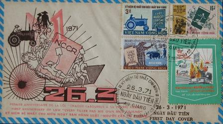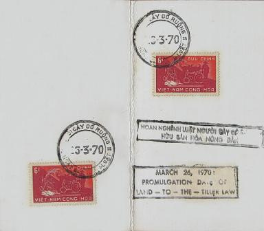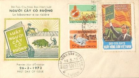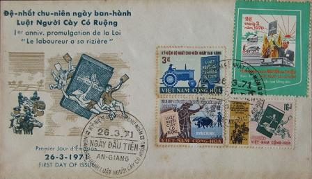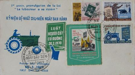 Ngày 02/07/1974 phát hành mẫu tem "Kỷ niệm đệ nhất chu niên ngày ban hành luật người cày có ruộng" in lại giá tiền