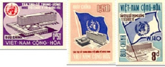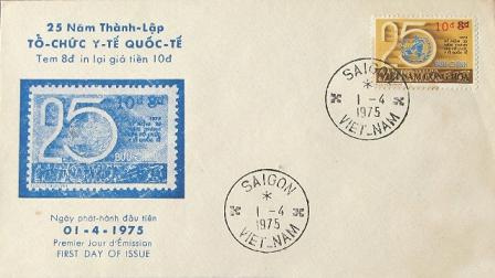 Ngày 01/04/1975 phát hành mẫu tem "Kỷ niệm 25 năm thành lập Tổ chức Y tế Quốc tế" in lại giá mặt