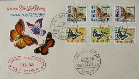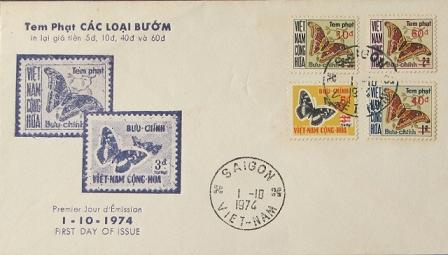 Ngày 01/10/1974 phát hành bộ tem phạt "Các loại bướm" in lại giá tiền
