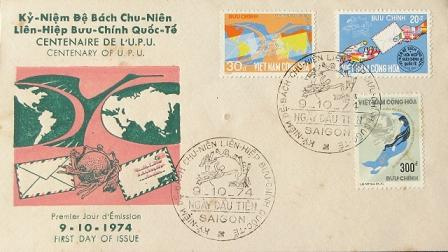 Ngày 09/10/1974 phát hành bộ tem "Kỷ niệm đệ bách chu niên liên hiệp bưu chính quốc tế"