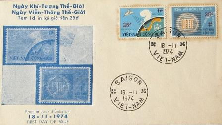 Ngày 18/11/1974 phát hành mẫu tem "Ngày khí tượng quốc tế" và mẫu tem "Ngày viễn thông thế giới"